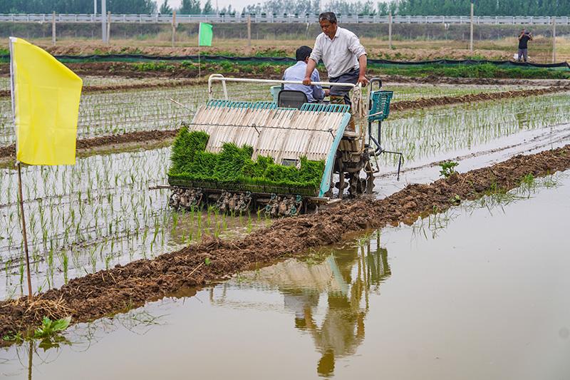 6月17日,山東省鄒平市臺子鎮(zhèn)沙里村聯(lián)合稻蟹養(yǎng)殖基地,農戶在插秧。
