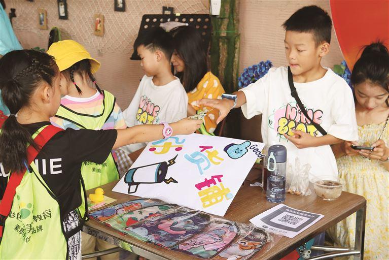 活動現(xiàn)場,30多名“小賣手”吆喝著售賣漫畫作品、涼粉、米蟲、涼粽、南瓜花、西紅柿、豆腐釀等,忙得不亦樂乎。