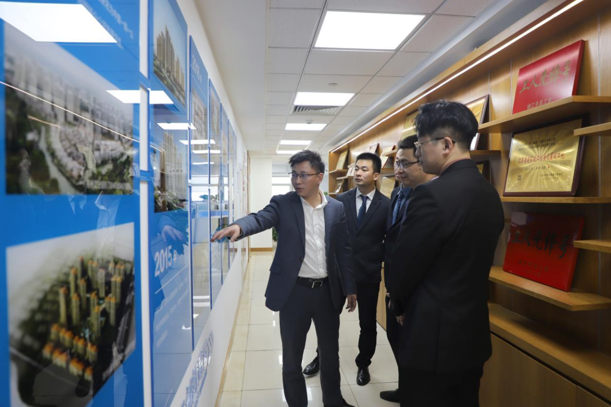 曹小剛邀請(qǐng)律所同志參觀江蘇分公司黨建文化墻,深入了解企業(yè)發(fā)展歷程及文化使命。