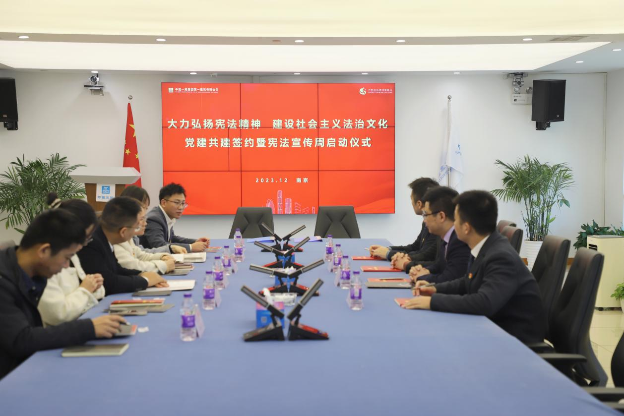 此外,陳世健一行前往江蘇分公司南京安居地鐵四號(hào)線孟北站住宅項(xiàng)目部,與項(xiàng)目黨支部開展黨建共建簽約暨憲法宣傳周啟動(dòng)儀式。陳世健對(duì)國家憲法進(jìn)行科普并對(duì)相關(guān)知識(shí)展開宣傳,用通俗易懂的語言向項(xiàng)目部的員工們介紹了憲法的地位、作用和意義,并耐心解答了員工們關(guān)心的法律問題。通過具體案例的解析,他詳細(xì)介紹了如何在日常生活中運(yùn)用憲法來維護(hù)自己的合法權(quán)益。