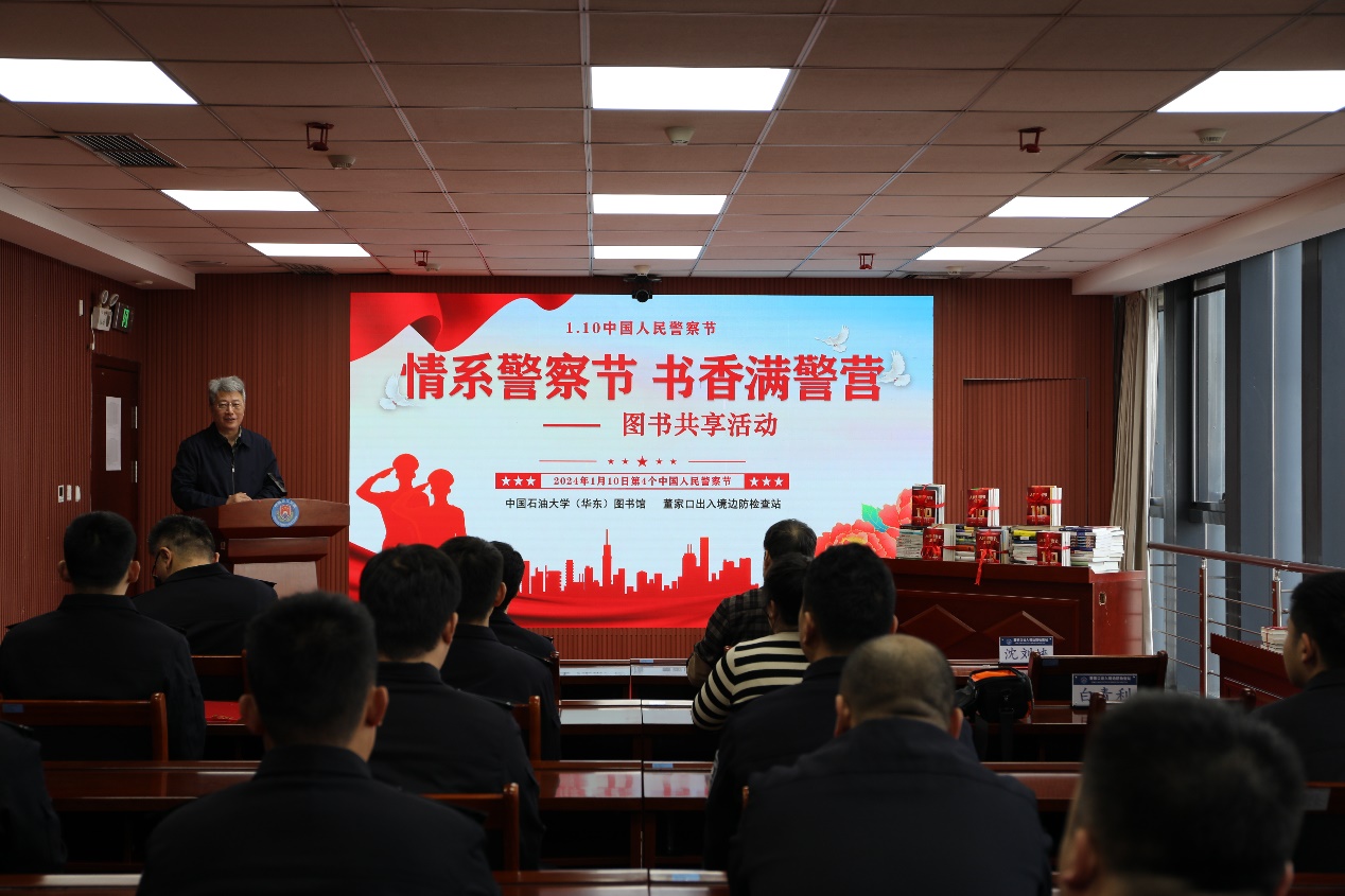 1月8日,山東出入境邊防檢查總站董家口邊檢站與中國石油大學(xué)(華東)圖書館開展“情系警察節(jié) 書香滿警營”圖書共享活動(dòng),慶祝第四個(gè)中國人民警察節(jié),鼓勵(lì)民警發(fā)現(xiàn)讀書的樂趣,培養(yǎng)讀書的習(xí)慣,推動(dòng)“書香警營”建設(shè)。