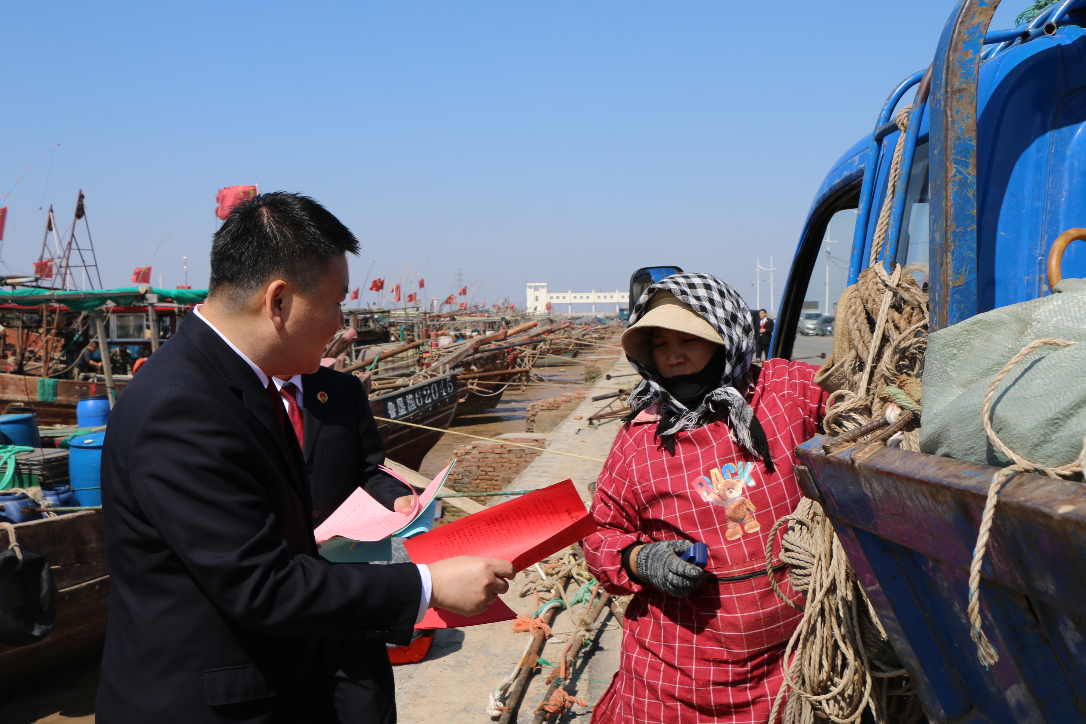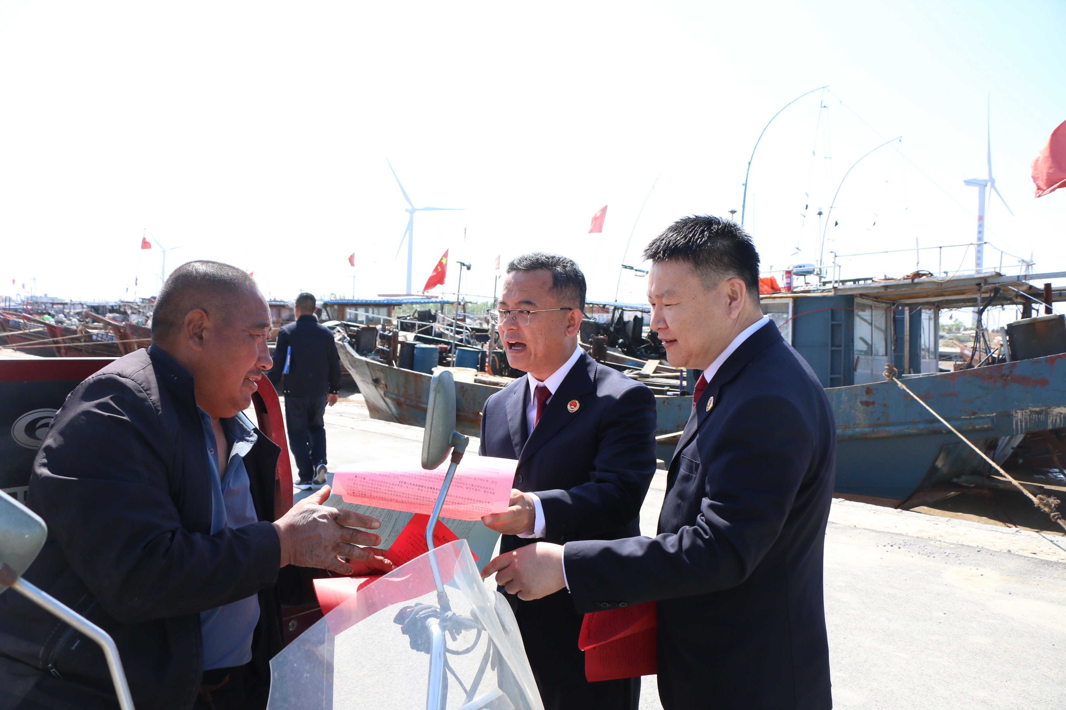 檢察官通過懸掛宣傳橫幅、發(fā)放宣傳冊、以案釋法宣講等方式,向漁民講解伏季休漁相關法律法規(guī)和案例,幫助其增強守法自覺和生態(tài)保護意識。