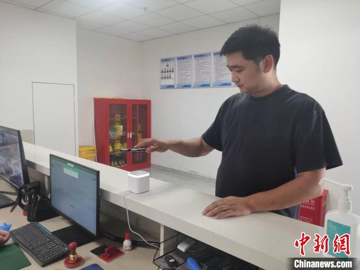 畜牧企業(yè)工作人員在上海葉新動(dòng)物防疫監(jiān)督檢查站接受電子證明核驗(yàn)(浙江省農(nóng)業(yè)農(nóng)村廳供圖)