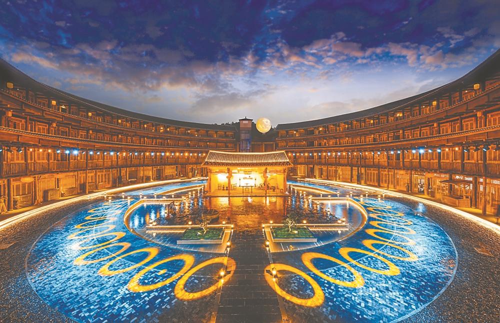 “古”是土樓的外在,“住”是土樓的內核。永定還打造了獨特的土樓民宿群。目前完成了南江村朝陽樓、東昌樓、洪坑村昇恒樓、南江村南興樓、新南村長源樓等民宿改造。民宿房間保留了土樓裸露的墻面,傳統(tǒng)農(nóng)耕器具的布置也融合了耕讀文化與現(xiàn)代藝術,住客能親手觸碰建筑肌理,體驗濃厚的鄉(xiāng)村文化。