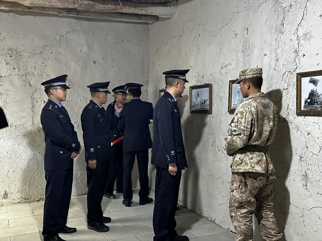 宣誓結束后,移民管理警察們依次排隊走進先遣連遺址大廳內(nèi),在一件件實物、一幕幕影像前駐足參觀、認真聆聽講解,努力觸摸革命烈士的豐功偉績,感受邊防戰(zhàn)士“寧可青山埋忠骨、不讓祖國丟寸土”的時代脈搏。