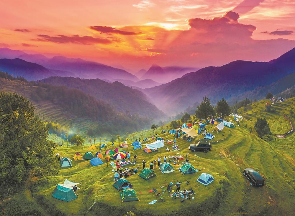 “這里的山景很美,坐著吹吹風(fēng),在好看的景致前拍照打卡,是我常來的露營(yíng)地之一?!闭f起戶外露營(yíng),吳先生頗有心得。5年前,他第一次接觸露營(yíng)便被深深吸引,現(xiàn)在已經(jīng)有了不少共同愛好露營(yíng)的朋友?!奥稜I(yíng)既能舒緩身心,又能親近自然,還能滿足社交需求,已成為我們?cè)诠?jié)假日的一種休閑方式?!眳窍壬f。