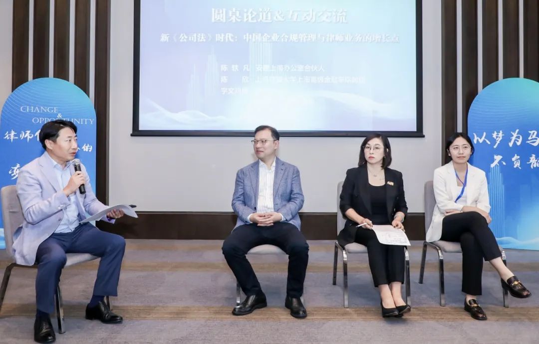 新《公司法》的實施為企業(yè)合規(guī)管理設(shè)置了很多新的課題,亦為律師展業(yè)提供了許多新的機會。為此,青年律師該如何“借勢”,化挑戰(zhàn)為機遇,實現(xiàn)個人成長?圍繞此話題,陳欣教授、安理合伙人宇文鴻雁律師、青年律師代表劉豆律師給出了諸多有益建議。陳軼凡律師擔(dān)任本環(huán)節(jié)主持。