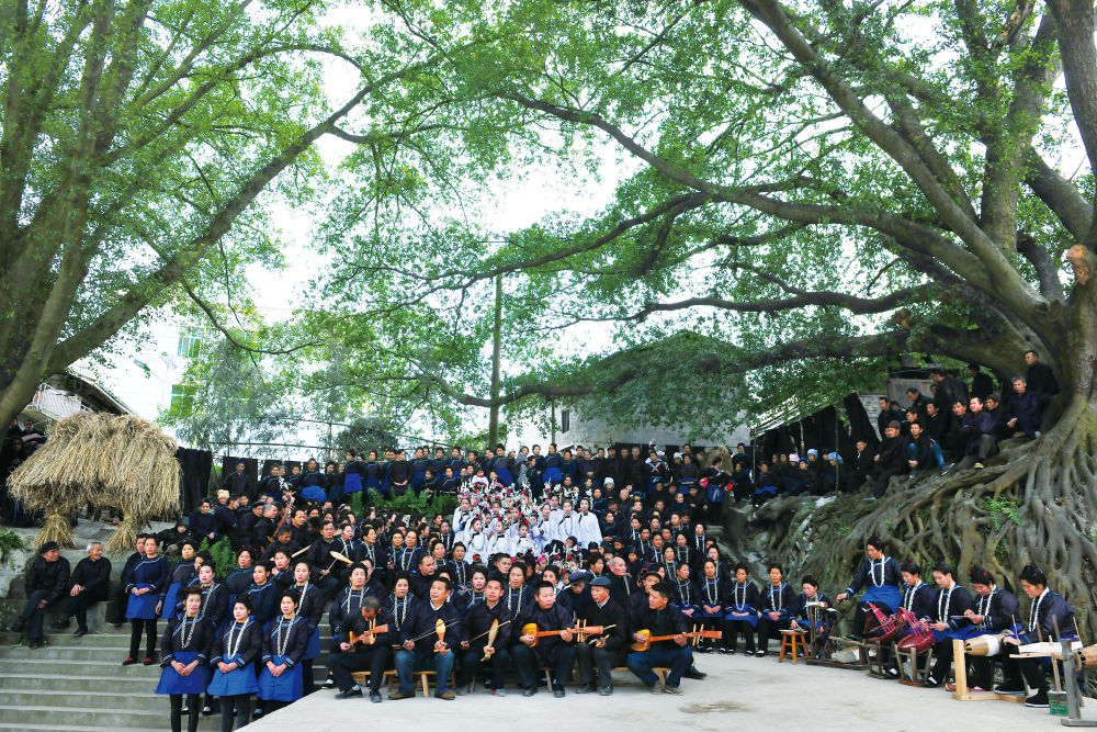 樂(lè)鄉(xiāng)侗寨的古榕樹下,400余名男女歌手匯聚一堂,歌唱著侗家牛腿琴歌 吳江平 攝