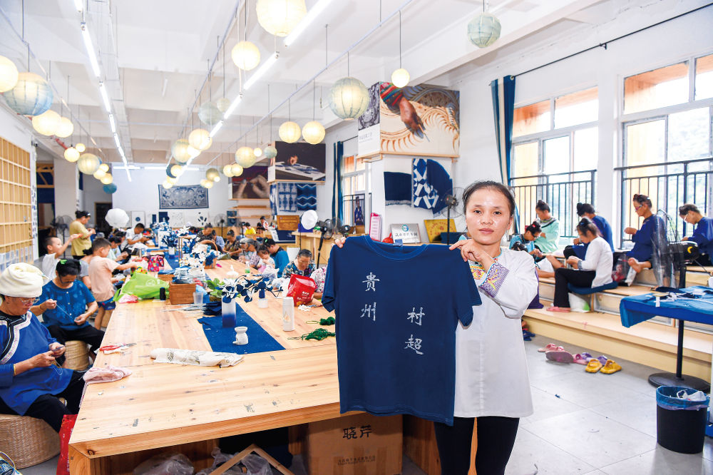 2023年5月貴州村超開賽后,現(xiàn)場(chǎng)數(shù)萬(wàn)群眾踴躍參與的熱情、場(chǎng)內(nèi)外豐富瑰麗的非遺展演,讓這項(xiàng)村級(jí)賽事迅速在全網(wǎng)發(fā)酵。村超爆紅,讓貴州多彩民族文化“被看見(jiàn)”,更帶動(dòng)了當(dāng)?shù)靥厣椀仁止に嚻贰俺鋈Α?,榕江村寨里以往賦閑在家、照看孫輩的嬢嬢們,因此有了在家門口、江水邊、榕樹下發(fā)揮特長(zhǎng)就業(yè)創(chuàng)收的機(jī)會(huì)。