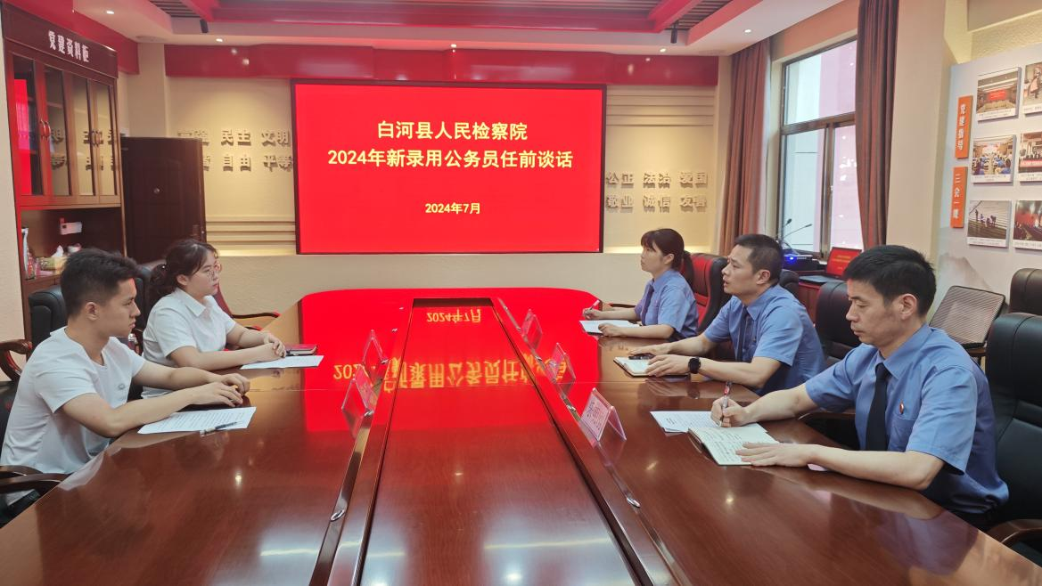 為使新進干警盡快轉變角色,適應新環(huán)境,增強檢察履職使命感和責任感,7月16日,陜西省安康市白河縣人民檢察院召開2024年新入職公務員任前談話會,2名新錄用人員從檢之路就此啟航。