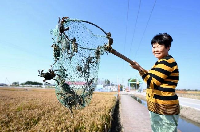 農(nóng)戶在曹妃甸區(qū)第四農(nóng)場(chǎng)開展稻蟹立體種養(yǎng)