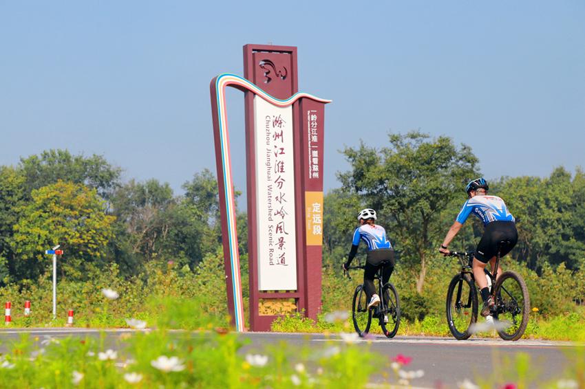 騎行愛(ài)好者在江淮分水嶺風(fēng)景道定遠(yuǎn)段騎行(滁州市文旅局供圖)