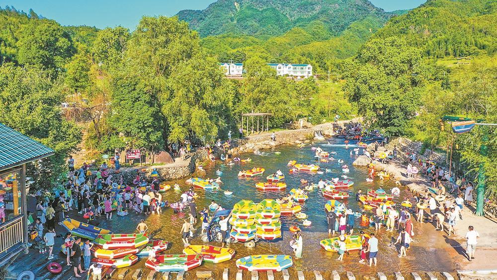 高峰村的漂流項目吸引眾多游客前來體驗