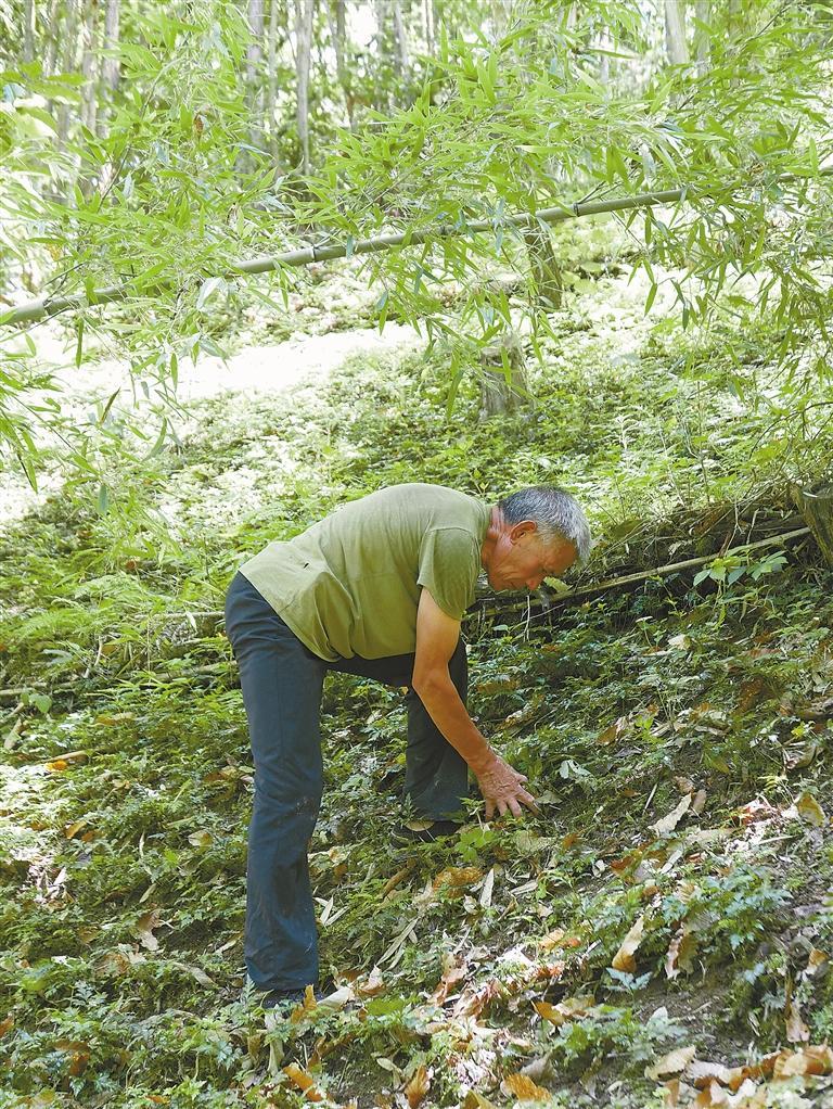 7月31日,農戶為林下種植的黃連除草 記者 齊珂雨 攝