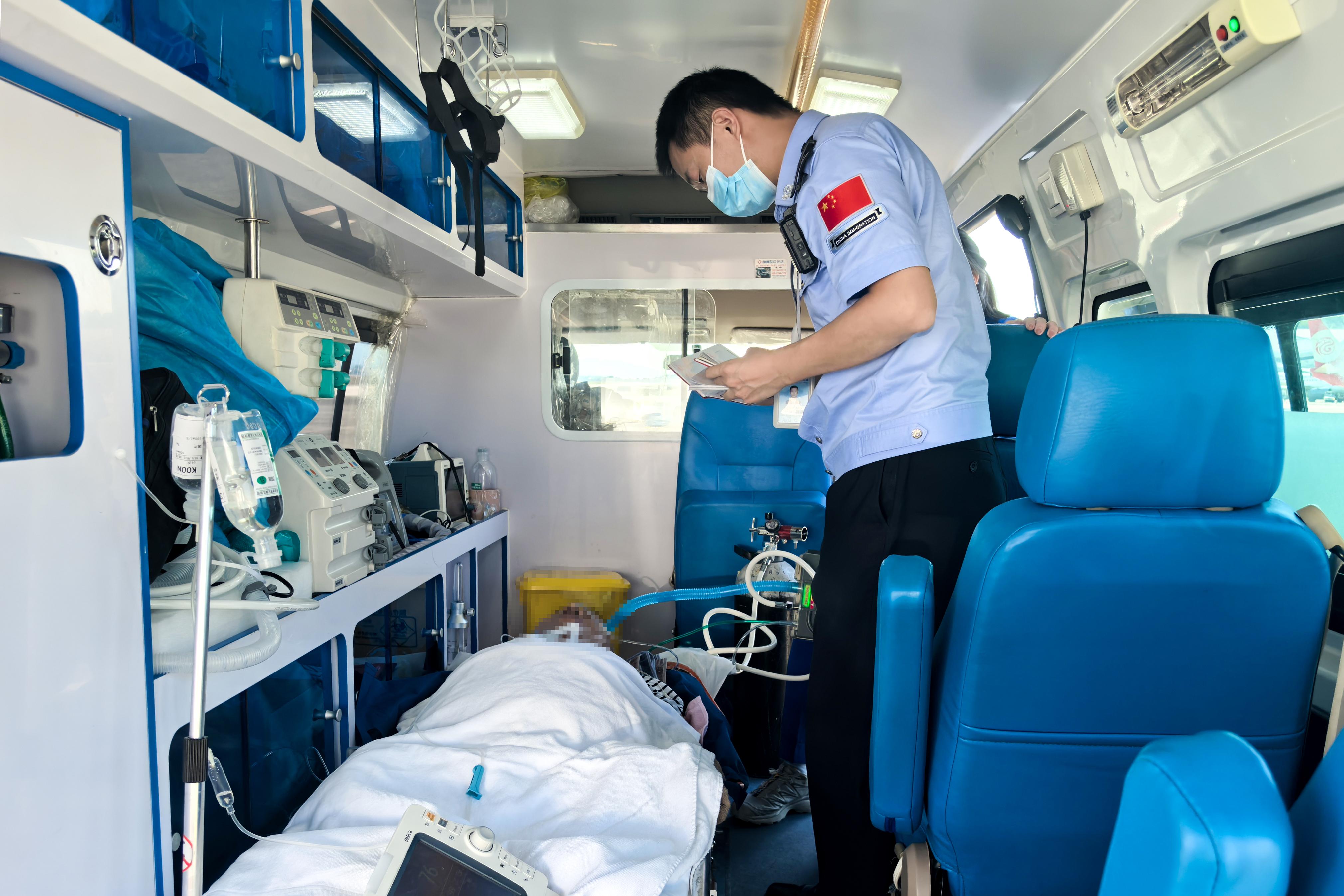 9月24日,張家界邊檢站民警在救護車上進行人證對照 李杰 攝