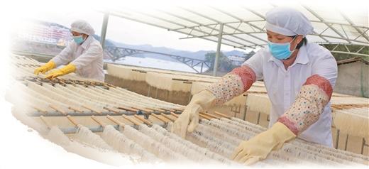 2020年,京南米粉制作技藝正式列入第八批自治區(qū)級非物質(zhì)文化遺產(chǎn)代表性項目名錄?!皞鹘y(tǒng)手工藝制作的京南米粉色澤光亮、柔韌耐煮、吃起來細滑爽口。”京南米粉制作技藝傳承人羅年說,京南米粉以當?shù)孛磕晷率盏脑绲久缀透呱饺疄樵?,純手工制作,因其獨特口感,廣受消費者青睞。