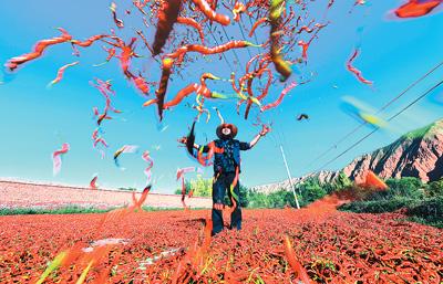 青海省海東市循化撒拉族自治縣清水鄉(xiāng)多灘地、谷地,全年日照充足,出產(chǎn)的線辣椒色澤鮮紅,“香而不辣,口味獨(dú)特”,受到大眾喜愛(ài)。正是豐收時(shí)節(jié),清水鄉(xiāng)家家戶戶在房前屋后晾曬線辣椒,構(gòu)成一幅喜人的秋日?qǐng)D景。