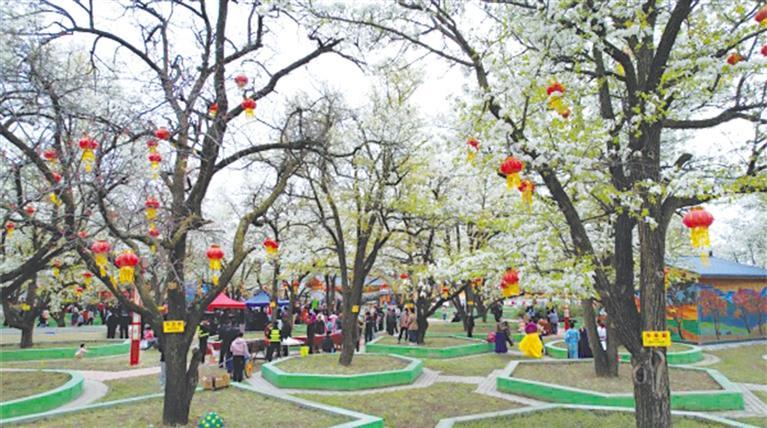 綻放的梨花吸引游客駐足觀賞