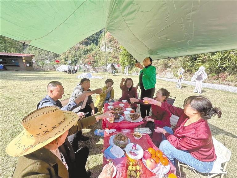 “我們的戶外特色帳篷‘星象’,一到節(jié)假日就得早早預(yù)訂?!鄙耠[谷露營(yíng)基地負(fù)責(zé)人胡桃根說(shuō),今年前10月,露營(yíng)基地共接待游客10萬(wàn)人次,帶動(dòng)周邊20多名村民就業(yè)增收,也讓村里的特色農(nóng)產(chǎn)品賣上了好價(jià)錢。