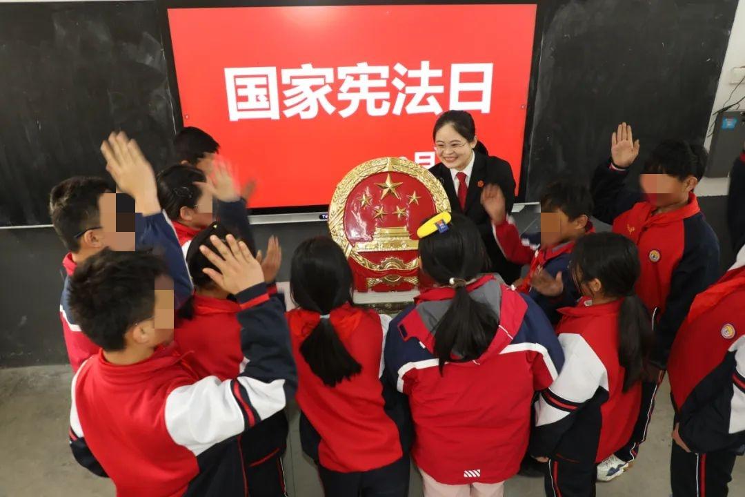 “國徽是什么顏色的?中間的五角星代表著什么……”“法官姐姐”向同學(xué)們詳細(xì)講解國徽的圖案、顏色、尺寸、制作、使用等規(guī)定,幫助他們認(rèn)識國徽、了解國徽。隨后,“法官姐姐”進(jìn)行現(xiàn)場提問,同學(xué)們踴躍舉手回答,現(xiàn)場氣氛歡快熱烈。