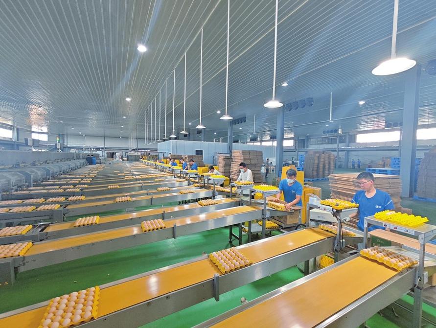 臨猗縣北辛鄉(xiāng)蛋雞養(yǎng)殖場(chǎng)工人在分揀雞蛋