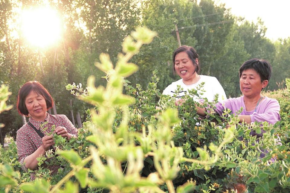 新絳縣澤掌鎮(zhèn)農(nóng)民在采摘金銀花