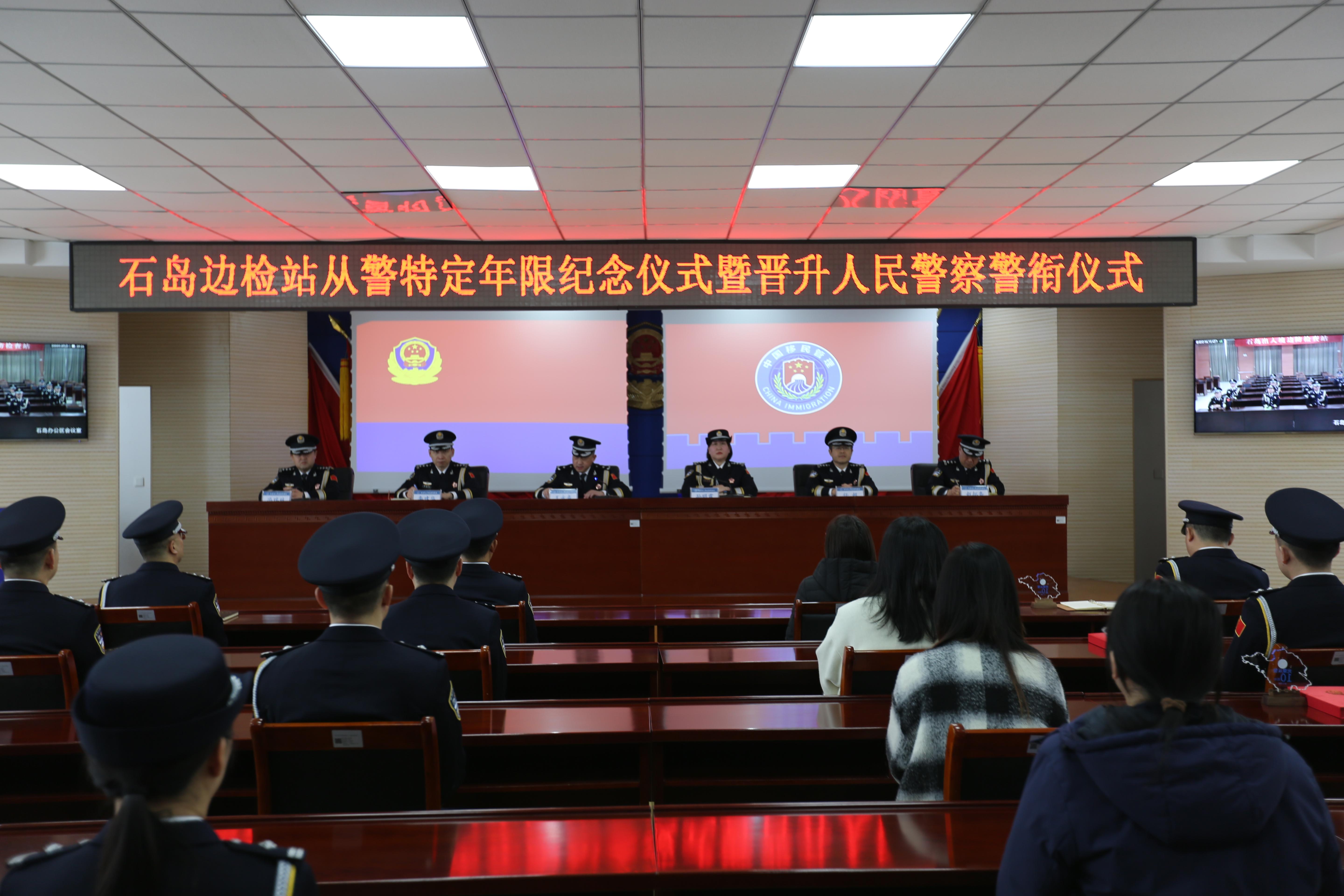 為熱烈慶祝第五個(gè)中國人民警察節(jié),進(jìn)一步激發(fā)隊(duì)伍凝聚力戰(zhàn)斗力、提高民警榮譽(yù)感歸屬感,1月9日,山東省榮成市石島出入境邊防檢查站舉辦從警特定年限紀(jì)念儀式暨晉升人民警察警銜儀式。