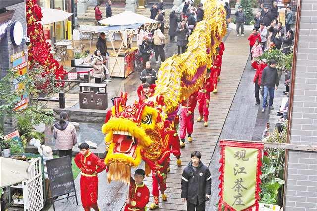 重慶高新區(qū)走馬古鎮(zhèn)用非遺點燃游客的熱情:春節(jié)期間,舞龍隊、舞獅隊、花船、腰鼓隊等在古鎮(zhèn)里巡游;當?shù)卮迕褡跃幾匝莸纳徍嵨?、魚燈舞等吸引了十里八鄉(xiāng)的村民前來打卡。