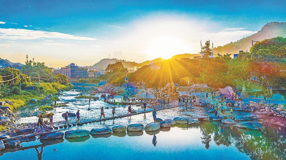 游客在金谷溪岸文藝村享受快樂的休閑時(shí)光(資料圖片)