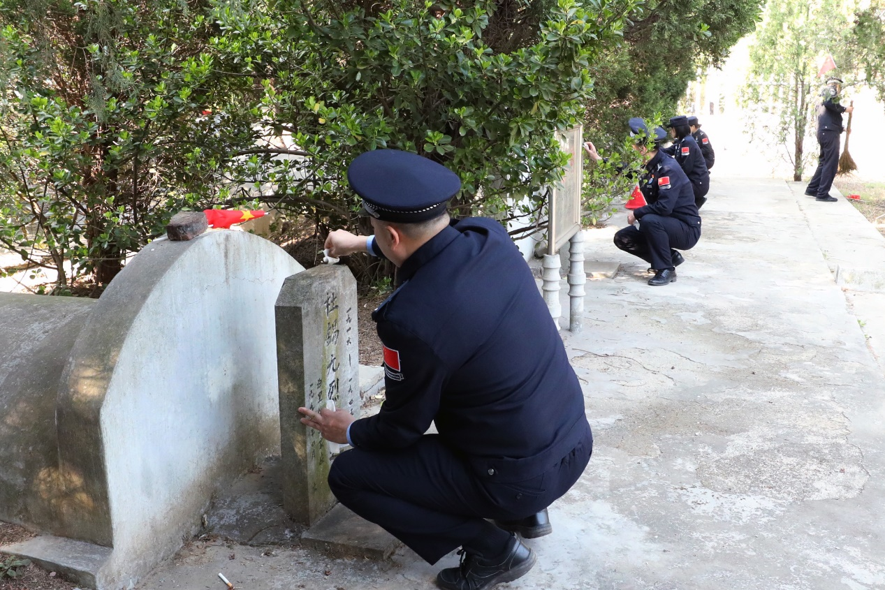 上午9時(shí),參與活動(dòng)的民警職工整齊列隊(duì)于烈士紀(jì)念碑前,對陵園進(jìn)行清理,擦拭墓碑、清掃落葉,以整潔的環(huán)境表達(dá)對英烈的哀思與敬意。