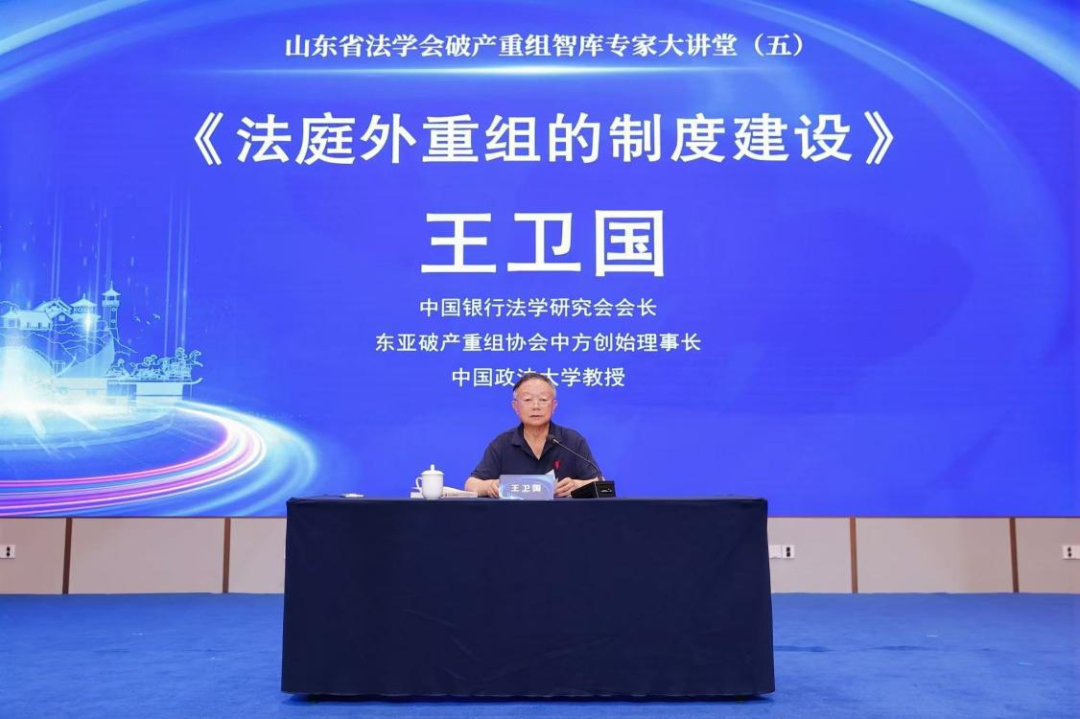 山東省法學(xué)會(huì)破產(chǎn)重組智庫專家、中國銀行法學(xué)研究會(huì)會(huì)長、東亞破產(chǎn)重組協(xié)會(huì)中方創(chuàng)始理事長、中國政法大學(xué)教授王衛(wèi)國作《法庭外重組的制度建設(shè)》的主旨發(fā)言,系統(tǒng)地從庭外重組的性質(zhì)、地位、意義、模式以及庭外重組與司法制度的銜接問題等方面講述了庭外重組制度的構(gòu)建路徑,強(qiáng)調(diào)必須將治理金融風(fēng)險(xiǎn)和企業(yè)的債務(wù)困境放在一個(gè)非常突出的地位,指出庭外重組的三種模式及制度建設(shè)的目標(biāo)和要素,通過對(duì)國內(nèi)外破產(chǎn)制度的實(shí)踐進(jìn)行對(duì)比、分析,為危困企業(yè)市場化、法治化拯救提供更堅(jiān)實(shí)的規(guī)則支撐,助力優(yōu)化營商環(huán)境與經(jīng)濟(jì)高質(zhì)量發(fā)展。他通過系統(tǒng)闡釋了法庭外重組制度建設(shè)的核心理念與實(shí)踐路徑,對(duì)庭外重組制度的研究思路進(jìn)行了深入分析,為庭外重組制度的理論研究和實(shí)務(wù)問題解決提供啟發(fā)與新的思路。
