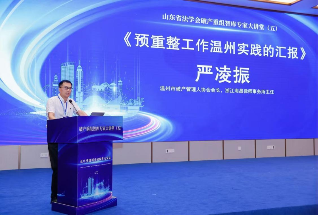 溫州市破產(chǎn)管理人協(xié)會(huì)會(huì)長、浙江海昌律師事務(wù)所主任嚴(yán)凌振以《預(yù)重整工作溫州實(shí)踐的匯報(bào)》為題發(fā)言,從溫州預(yù)重整實(shí)踐背景出發(fā),重點(diǎn)介紹了預(yù)重整工作中的一些具體舉措:通過府院聯(lián)動(dòng)協(xié)同推進(jìn),建立府院聯(lián)席會(huì)議制度,出臺(tái)多個(gè)府院聯(lián)席會(huì)議紀(jì)要,解決有關(guān)破產(chǎn)企業(yè)的稅收、信用修復(fù)等關(guān)鍵問題,助力企業(yè)“復(fù)原”; 政府成立專門機(jī)構(gòu)具體負(fù)責(zé)企業(yè)預(yù)重整工作,創(chuàng)新出臺(tái)預(yù)重整工作規(guī)程與預(yù)重整管理人選任工作辦法:探索信用修復(fù)機(jī)制,首創(chuàng)征信系統(tǒng)“大事記”,隔斷原有失信記錄;在預(yù)重整階段提前完成重整核心工作,將預(yù)重整的成效帶入重整程序,實(shí)現(xiàn)預(yù)重整與正式重整的有效銜接等。溫州推進(jìn)預(yù)重整工作的核心,是將庭外重組與司法重整銜接,通過政府主導(dǎo)、法院監(jiān)督、多方協(xié)商,縮短重整周期并提高清償率,以高效拯救有再生價(jià)值的企業(yè)得以成功重生與持續(xù)發(fā)展:為困境企業(yè)的涅槃重生提供了有效路徑,同時(shí)也避免了擔(dān)保鏈風(fēng)險(xiǎn)擴(kuò)散,為區(qū)域經(jīng)濟(jì)穩(wěn)定發(fā)展做出了貢獻(xiàn)。