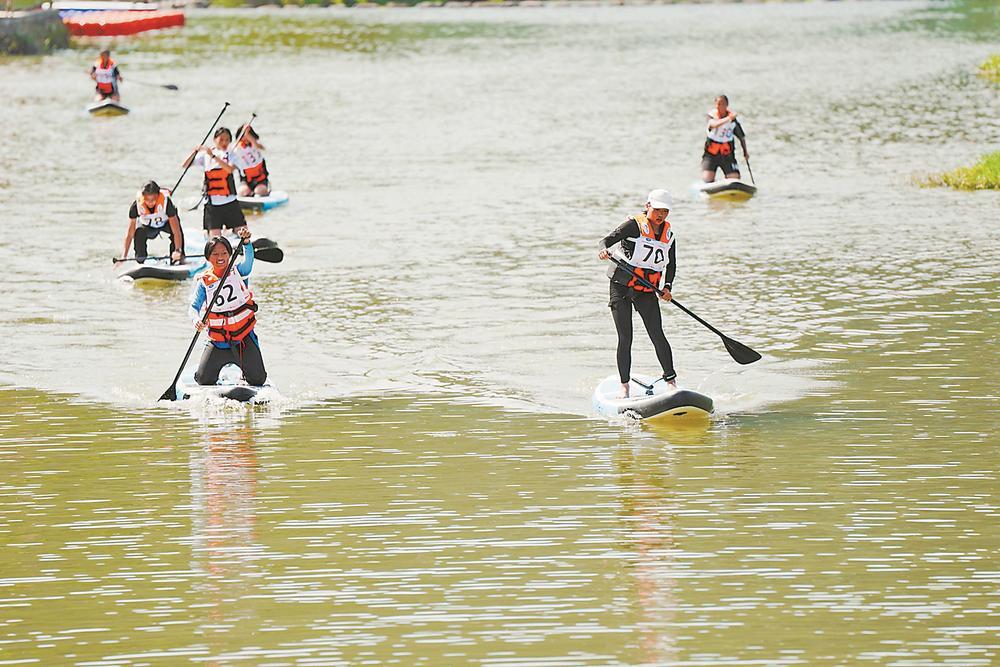 福建省水上運動聯(lián)賽(林墩站)比賽期間,選手們劈波斬浪。