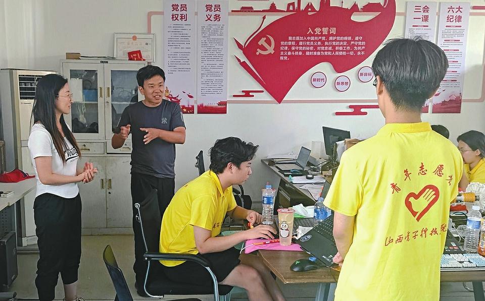 白冰(左二)指導(dǎo)大學(xué)生開展暑期社會實(shí)踐。記者 張志剛 攝