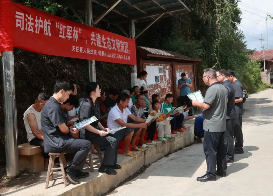 古樹名木是森林資源的瑰寶,更是歷史與文化的鮮活載體。8月13日,貴州省天柱縣人民法院牽頭聯(lián)合三穗、錦屏兩縣法院,組織黨員干警赴錦屏縣河口鄉(xiāng)塘東村“紅軍林”,共同開展“保護(hù)古樹名木,弘揚生態(tài)文明”主題黨日活動,以黨建“紅”引領(lǐng)生態(tài)“綠”,將黨組織戰(zhàn)斗力轉(zhuǎn)化為生態(tài)保護(hù)的強勁動力,讓紅色基因成為驅(qū)動高質(zhì)量發(fā)展的“綠色引擎”。
