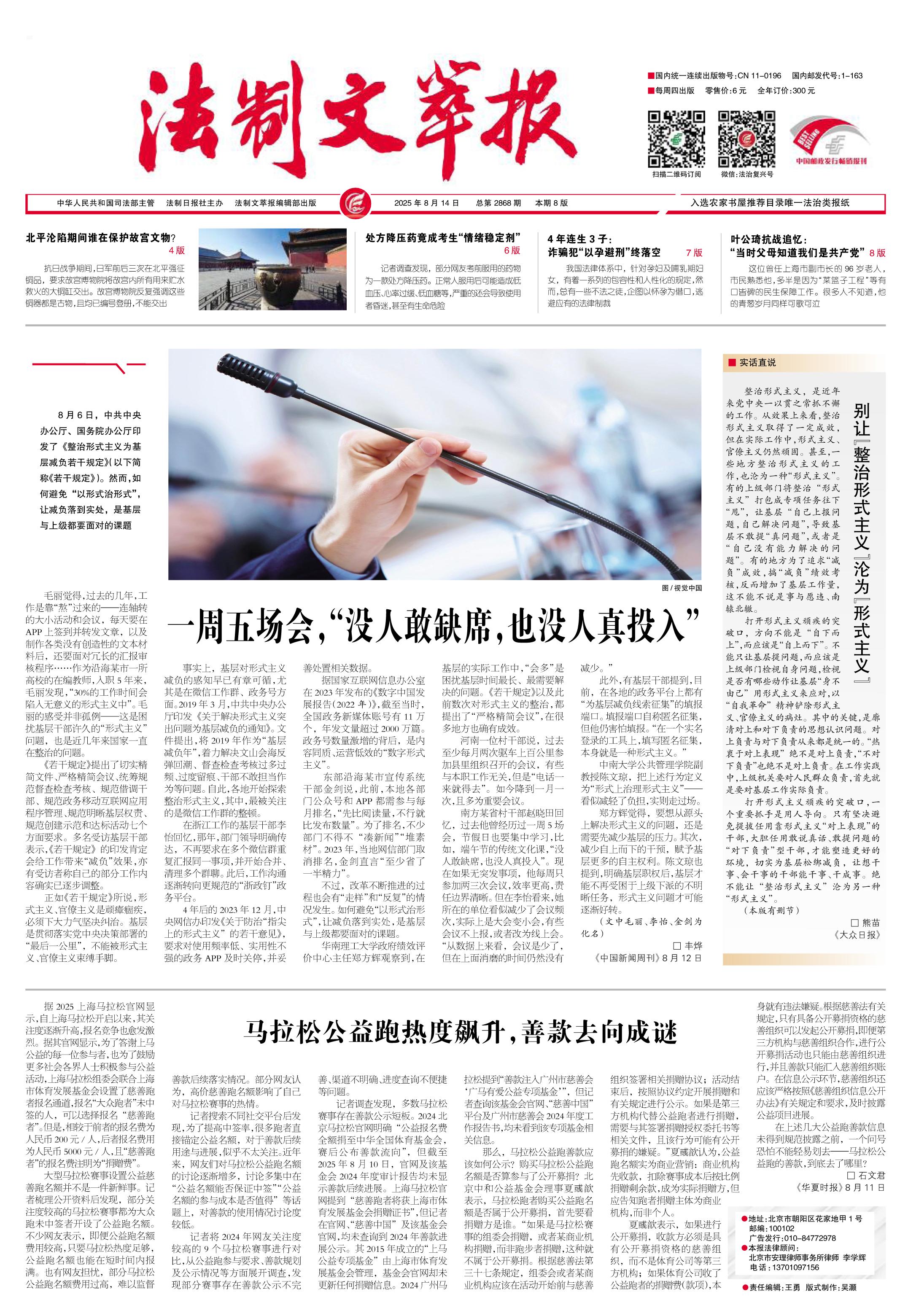 2025年8月14日《法制文萃報》總第2868期1版
