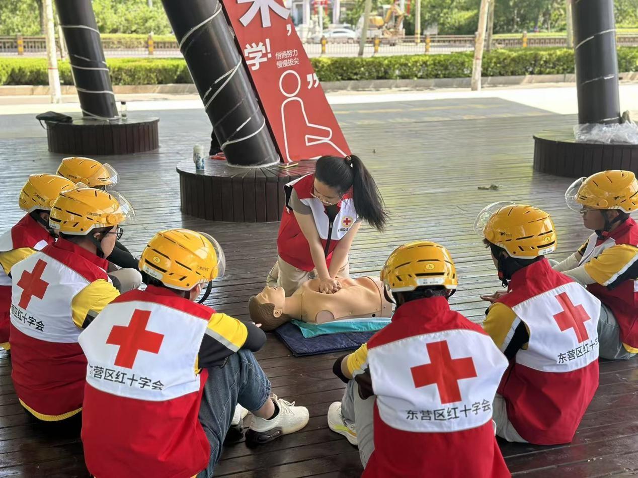 項目依托山東省東營市東營區(qū)新就業(yè)群體黨群服務(wù)中心、東營區(qū)化工產(chǎn)業(yè)園區(qū)紅運家黨群驛站兩大核心陣地,從“精準調(diào)研”到“專業(yè)落地”步步扎實。前期聯(lián)合交通運輸行業(yè)黨委,通過問卷、走訪、線上交流摸清群體規(guī)模、分布與急救需求,隨后組建起44人專業(yè)紅十字救護師資團隊與50名公益志愿者隊伍,讓培訓既有“專業(yè)高度”,又有“溫度厚度”。