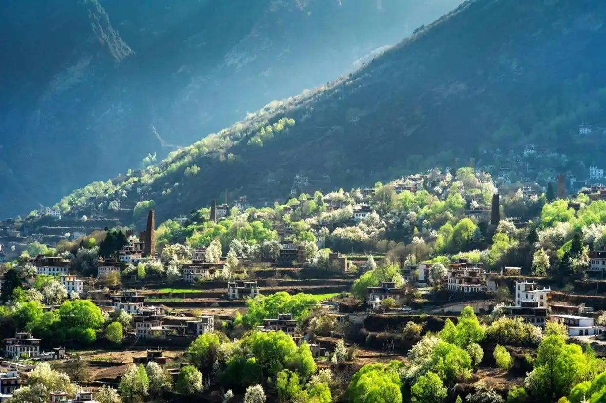 在藏語中,“基卡依”的意思是“幸福美麗的地方”?;ㄒ来遄溆诓厍家妥呃群诵膮^(qū)丹巴縣墨爾多山鎮(zhèn),村莊1700至5000米的海拔落差,塑造了“云端藏寨”高原立體農(nóng)業(yè)的獨特生態(tài)畫卷,是高原農(nóng)業(yè)文明的鮮活載體,完整保留著“女子成人禮”等古老傳統(tǒng),擁有“丹巴古碉群”“罕額依新石器時代文化遺址和漢代石棺葬墓群”等國家級文物保護單位?;ㄒ来?2座古碉與92戶傳統(tǒng)藏式民居構(gòu)成獨具嘉絨特色的聚落形態(tài),是藏羌碉樓與村寨的典型代表,被列為聯(lián)合國教科文組織世界預(yù)備遺產(chǎn)名錄。