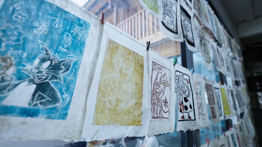 甲馬以刀為筆,鐫刻古老祈愿;扎染則以線為縛,在棉布上染出詩意。在匠志集的百工館里,陳列的一件件扎染制品吸引著眾多游客駐足。