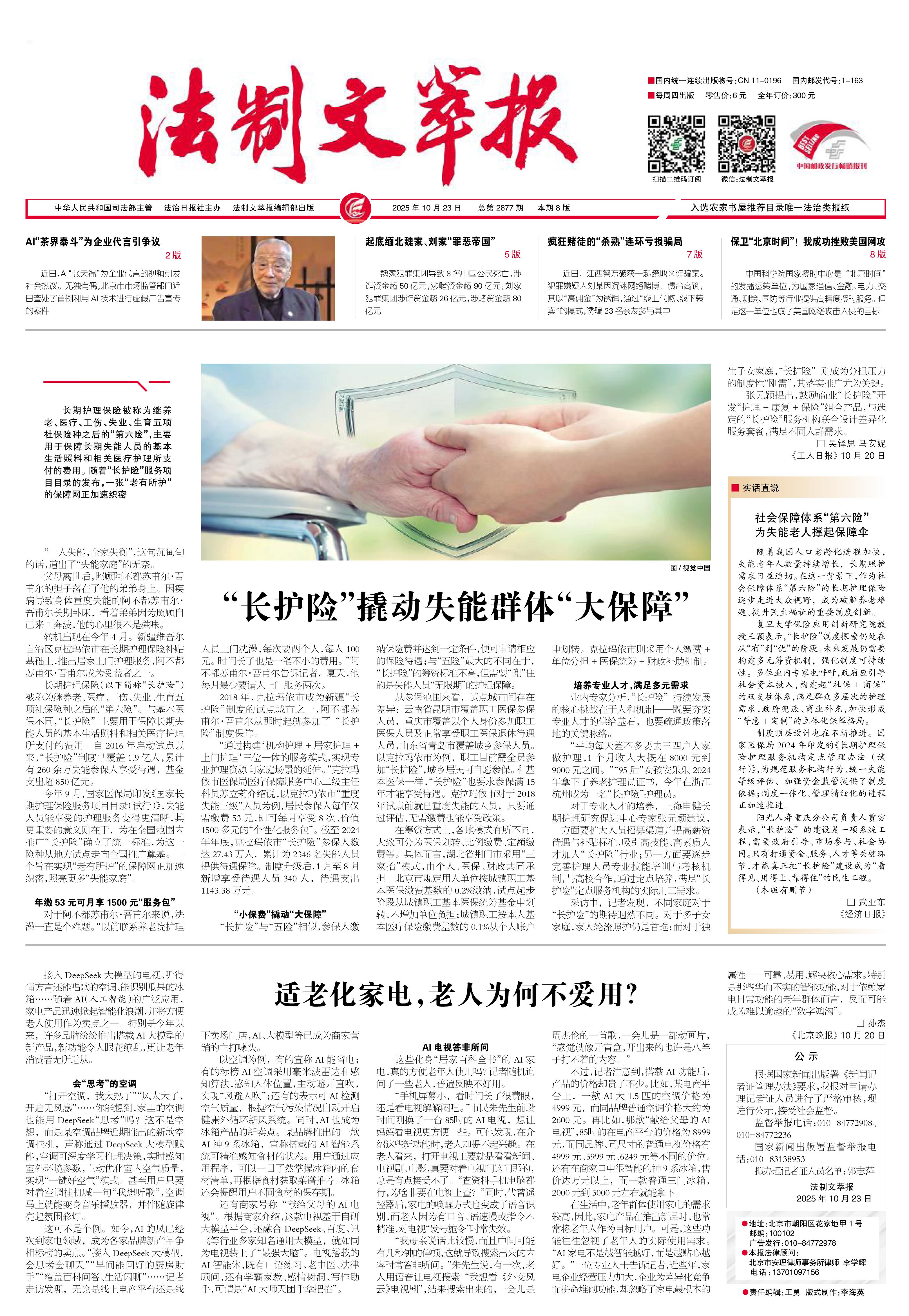 2025年10月23日《法制文萃報》總第2877期1版