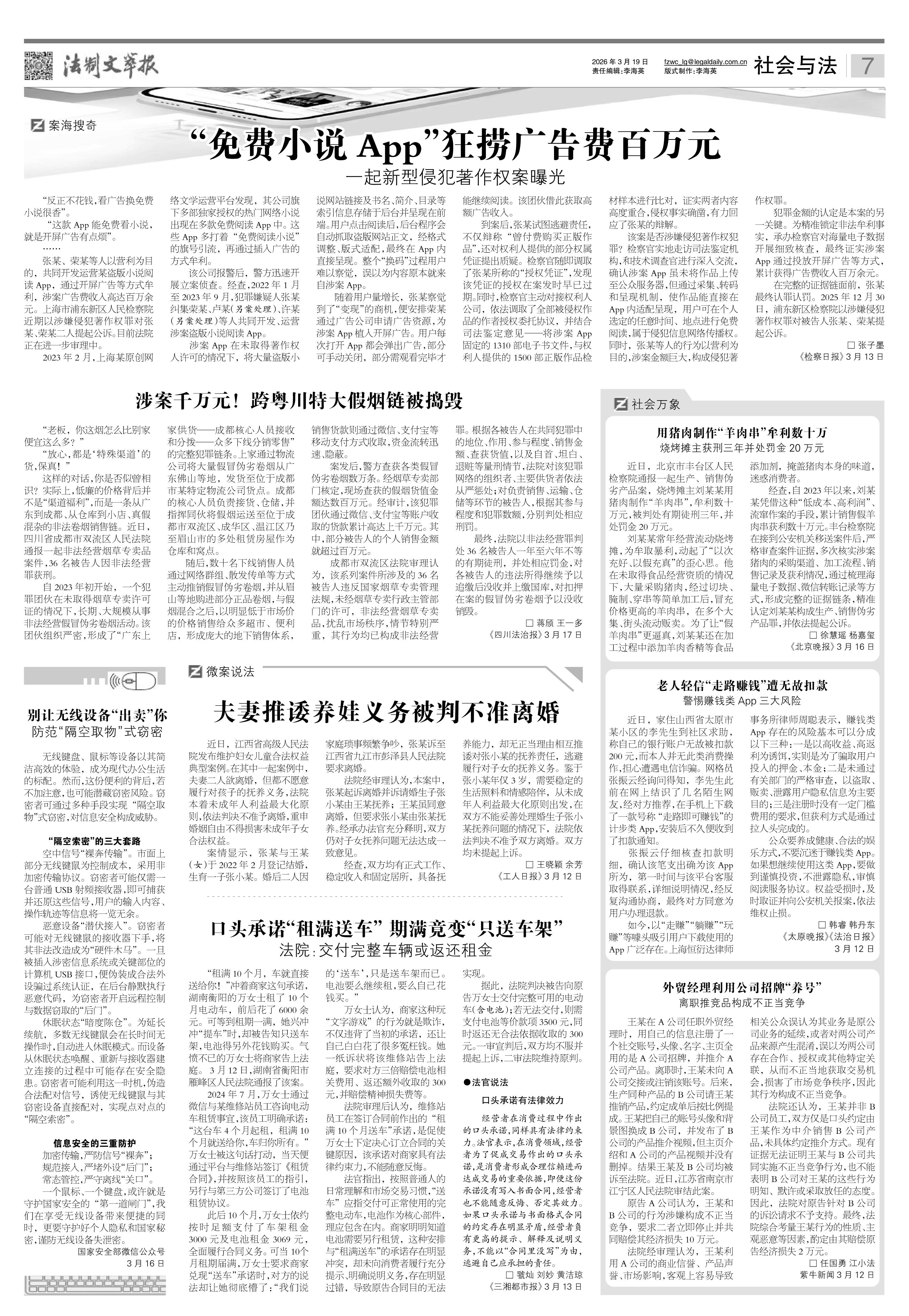 2026年3月19日《法制文萃報(bào)》總第2897期7版