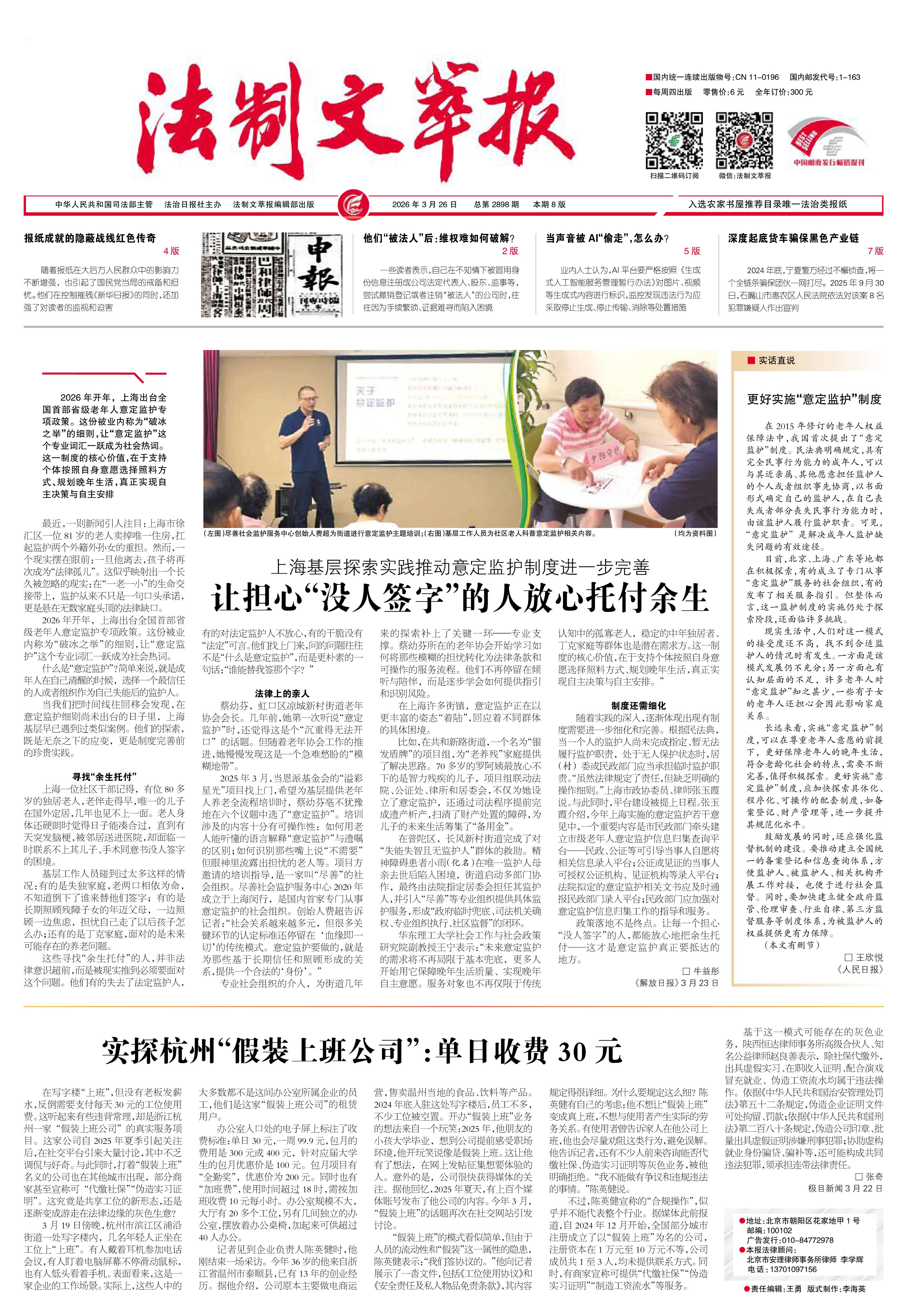 2026年3月26日《法制文萃報》總第2898期1版