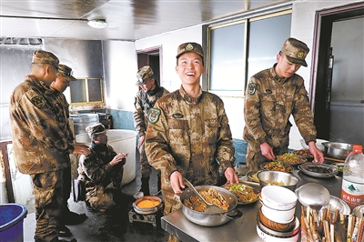 戰(zhàn)士夏夢(mèng)鑫兼任哨所的“大廚”,他喜歡和官兵交流做各地的家鄉(xiāng)菜,把哨所廚房變成了一個(gè)融合東西南北中菜肴的“烹飪學(xué)?!?。