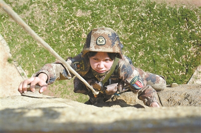 這個(gè)掌握通信、裝甲等多項(xiàng)技能的特戰(zhàn)女兵,沒有絲毫猶豫,麻利地攀登到了屋頂。目睹這一幕,這群男兵個(gè)個(gè)服氣了。