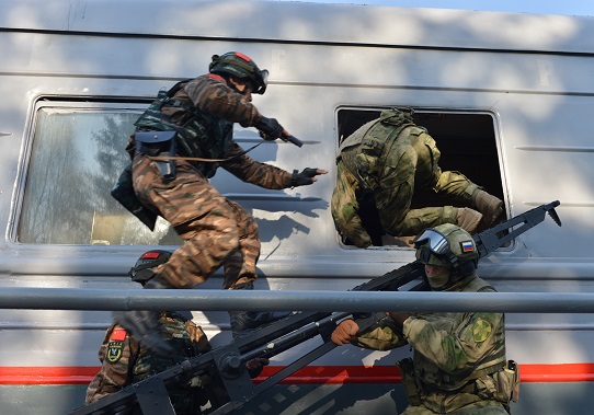 本次聯(lián)演為期11天,以聯(lián)合打擊恐怖主義為主題,按照“實戰(zhàn)化、對抗化、基地化”的思路,區(qū)分聯(lián)合基礎(chǔ)訓(xùn)練、戰(zhàn)術(shù)協(xié)同訓(xùn)練、綜合對抗演練3個階段,在俄羅斯新西伯利亞市近郊的“戈爾內(nèi)”訓(xùn)練中心及周邊地域展開4大類近30個課目的訓(xùn)練和交流。中國武警部隊和俄國民衛(wèi)隊分別派出獵鷹突擊隊和“葉爾馬克”獨立特種作戰(zhàn)部隊參加。