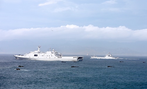 隨著指揮員一聲令下,戰(zhàn)艦森然列陣,萬里長空上戰(zhàn)機(jī)穿云破霧,水際灘頭前戰(zhàn)車突擊上陸,一場聯(lián)合登陸演習(xí)在諸軍兵種數(shù)千名官兵密切協(xié)同下拉開帷幕。