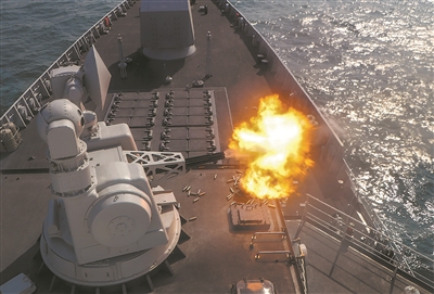航行途中,編隊(duì)各艦雷達(dá)相繼發(fā)現(xiàn)空中可疑目標(biāo),官兵立即進(jìn)入戰(zhàn)斗狀態(tài)。成都艦作戰(zhàn)室內(nèi),鍵盤聲、口令聲此起彼伏?!伴_火!”判明并鎖定目標(biāo)后,艦長(zhǎng)果斷下達(dá)攻擊命令。