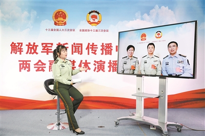 本報(bào)記者吳敏通過視頻連線方式采訪軍隊(duì)人大代表。蘇鶴 攝