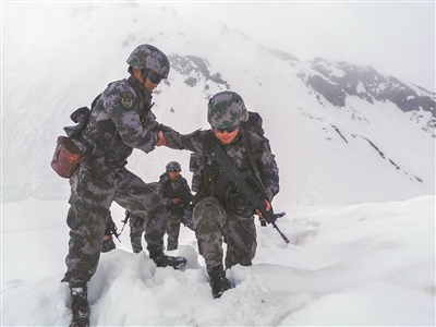 圖③:5月16日,西藏軍區(qū)某邊防團(tuán)官兵對(duì)海拔4600多米的點(diǎn)位實(shí)施巡邏。