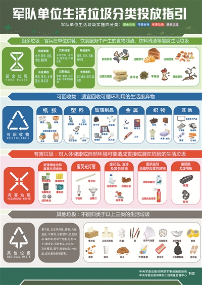 生活垃圾分類不僅是基本的民生問題,也是生態(tài)文明建設(shè)的題中之義。加快推進軍隊單位生活垃圾分類工作,對于引導(dǎo)官兵形成綠色生活方式,不斷改善營區(qū)和駐地環(huán)境質(zhì)量具有重要意義。